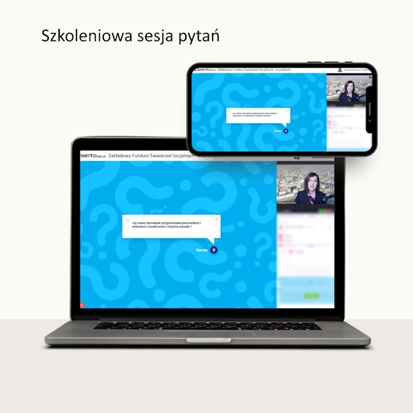 • maila z linkiem do szkolenia na żywo oraz szkoleniowej sesji pytań na żywo – w przeddzień oraz w dniu szkolenia/szkoleniowej sesji pytań. Pytania do prowadzącego szkolenie zadaje się podczas szkolenia/szkoleniowej sesji pytań na żywo za pomocą czatu. Czas trwania sesji pytań zależy od liczby i rodzaju pytań. Sesja planowana jest na ok. godzinę zegarową, ale możliwe jest jej przedłużenie w razie potrzeby.